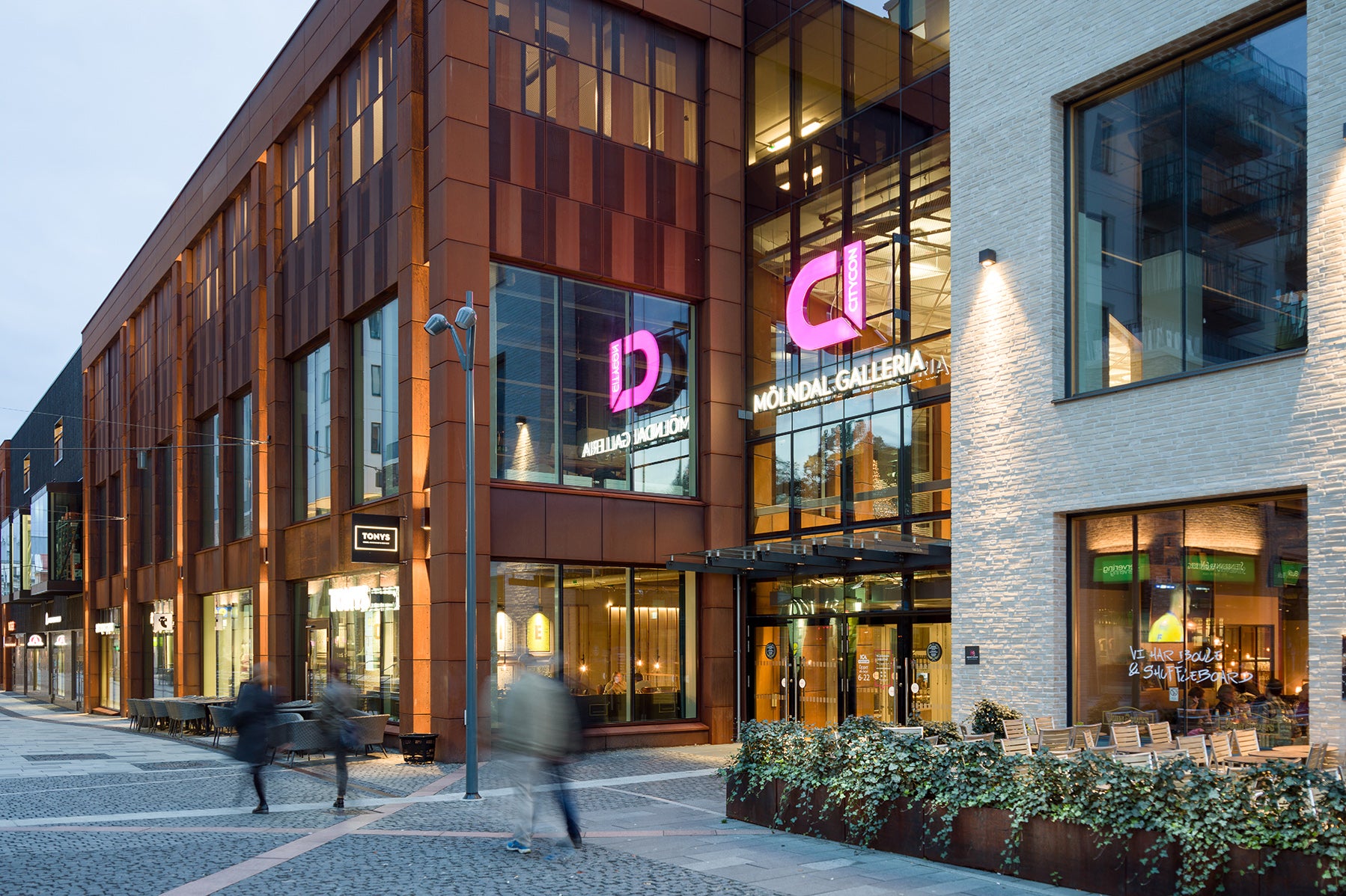 Mölndal Galleria är en central del i den stora omvandlingen av Mölndals Centrum. Konceptet bygger på ett stärkande samspel där den nya gallerian kompletterar den befintliga handeln och gör innerstaden till en levande handels- och mötesplats. Gallerians inre struktur är enkelt uppbyggd med två sammanlänkande torg på två plan med dagsljusinsläpp mitt i gallerian. Fotograf för bilderna är Felix Gerlach.